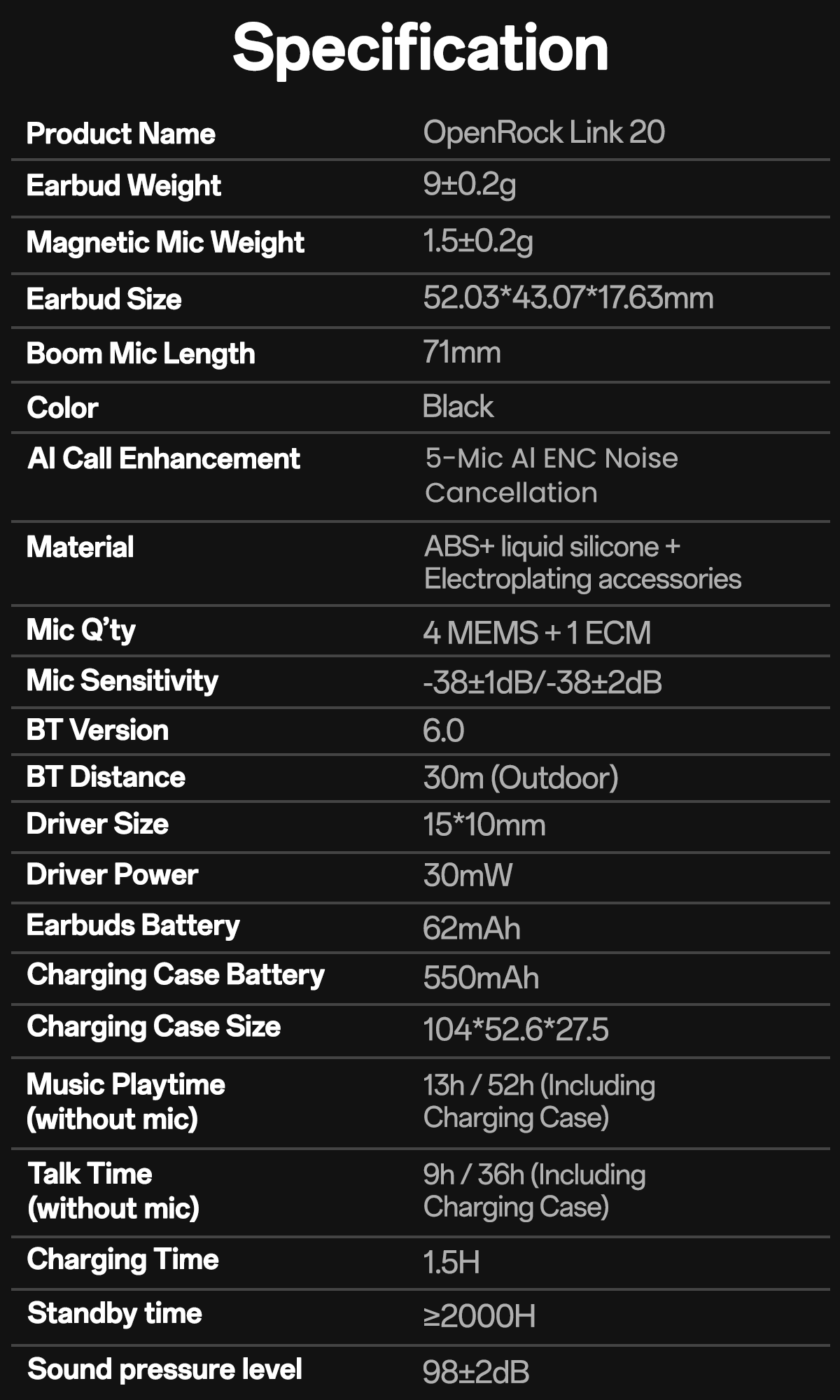 The OpenRock Link 20 equipped with cutting-edge Bluetooth 6.0 technology, it delivers fast, stable wireless connectivity with 50ft indoors or 99ft outdoors range. Dual-device pairing enables seamless transitions between office work, sports, and outdoor activities.